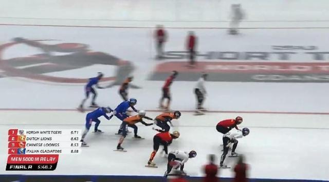 短道速滑世巡赛男子5000米接力决赛:中国队夺得亚军